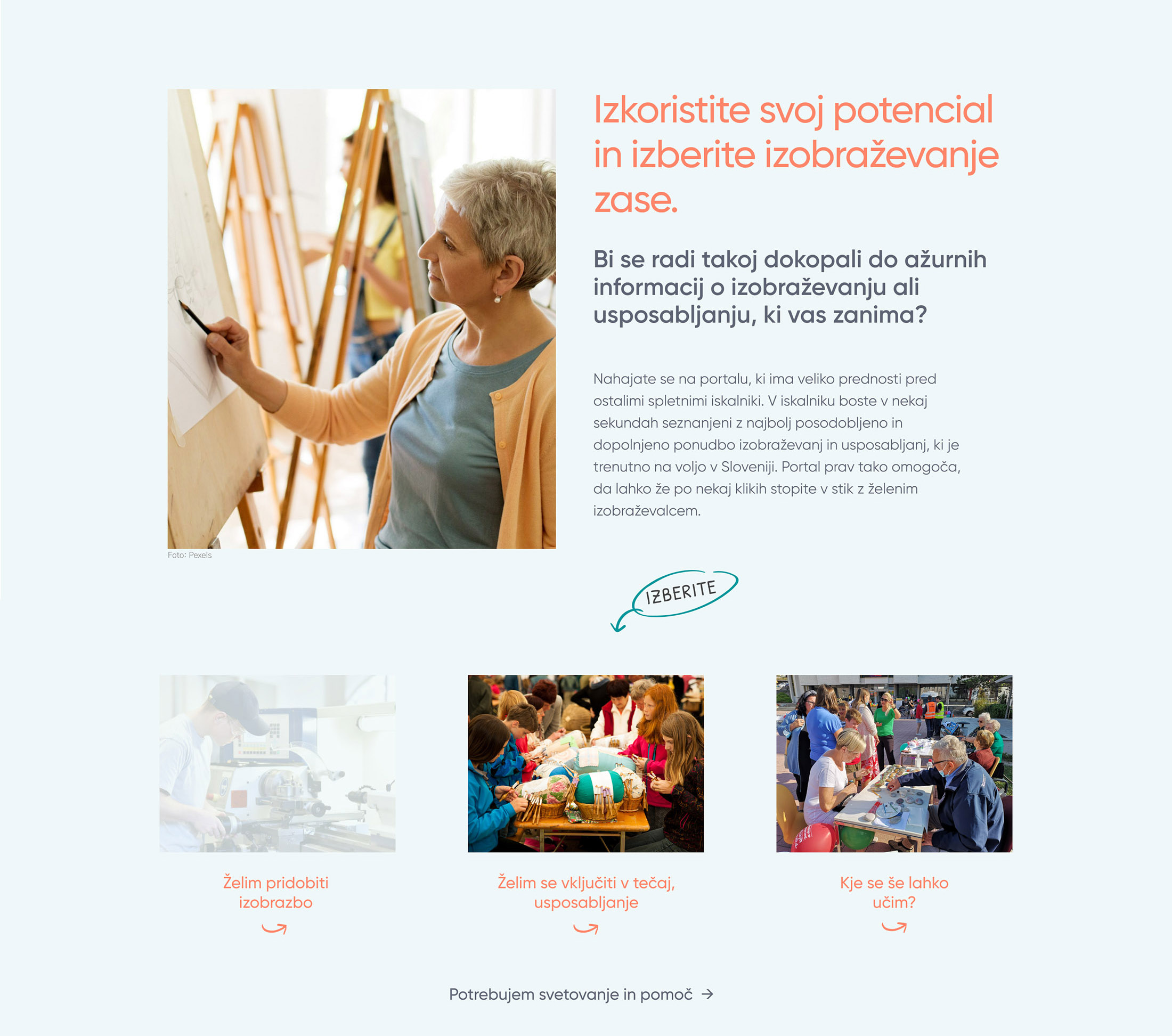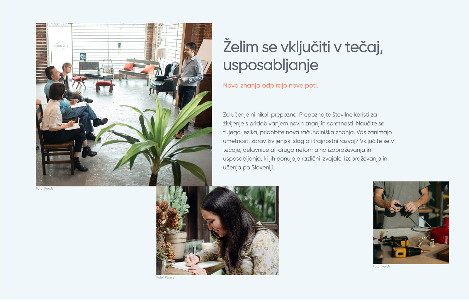 The redesign transformed Kam po znanje into a structured digital knowledge ecosystem.